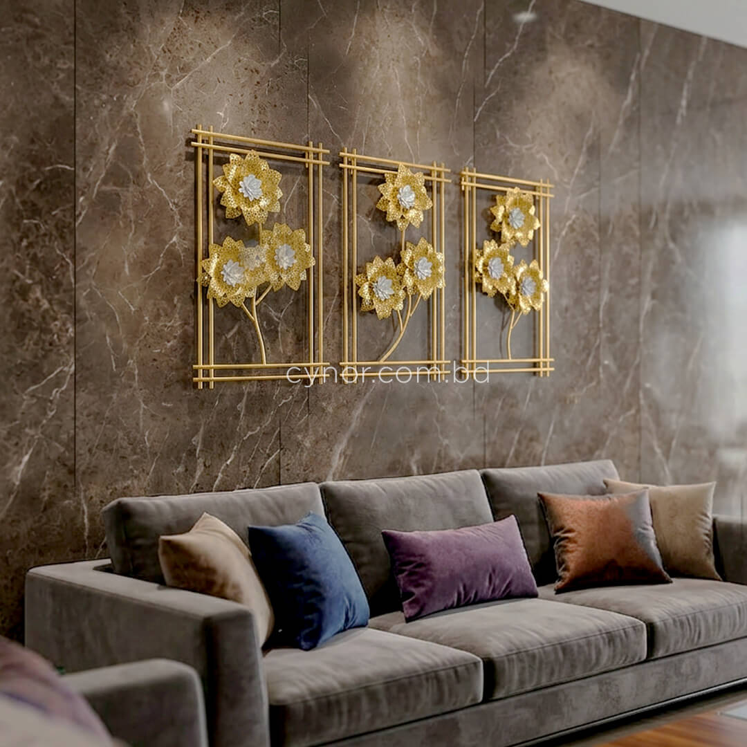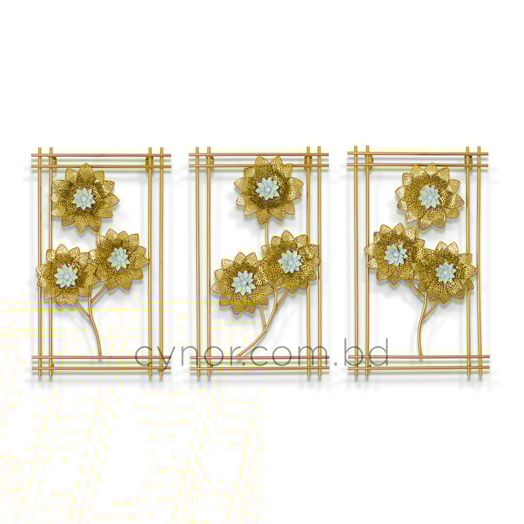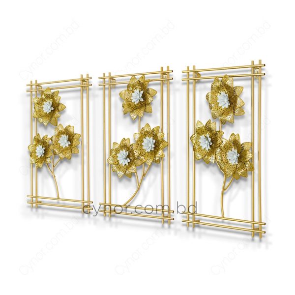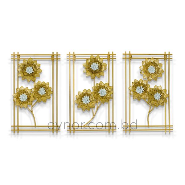 3 Piece Botanical Metal Wall Decor Set White and Gold