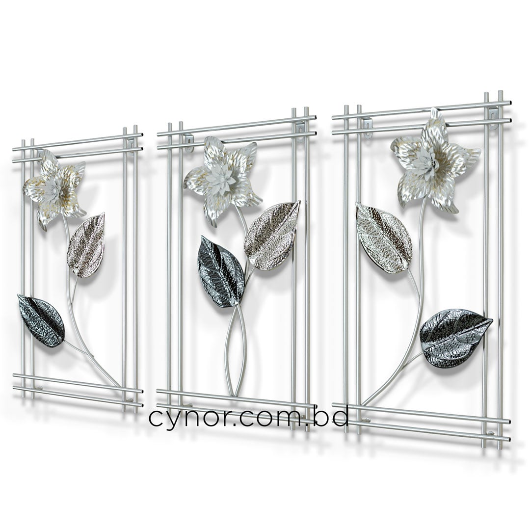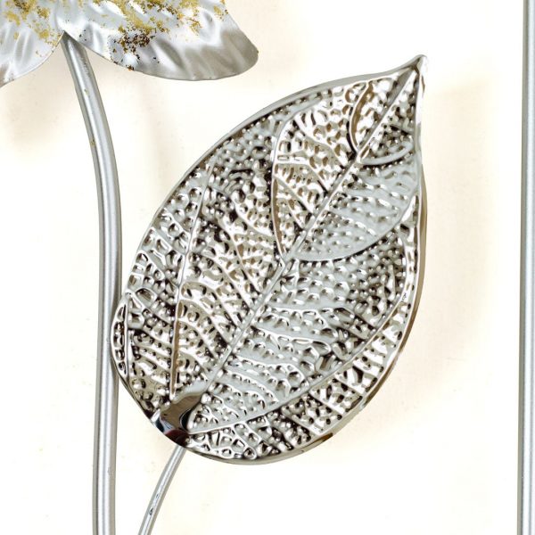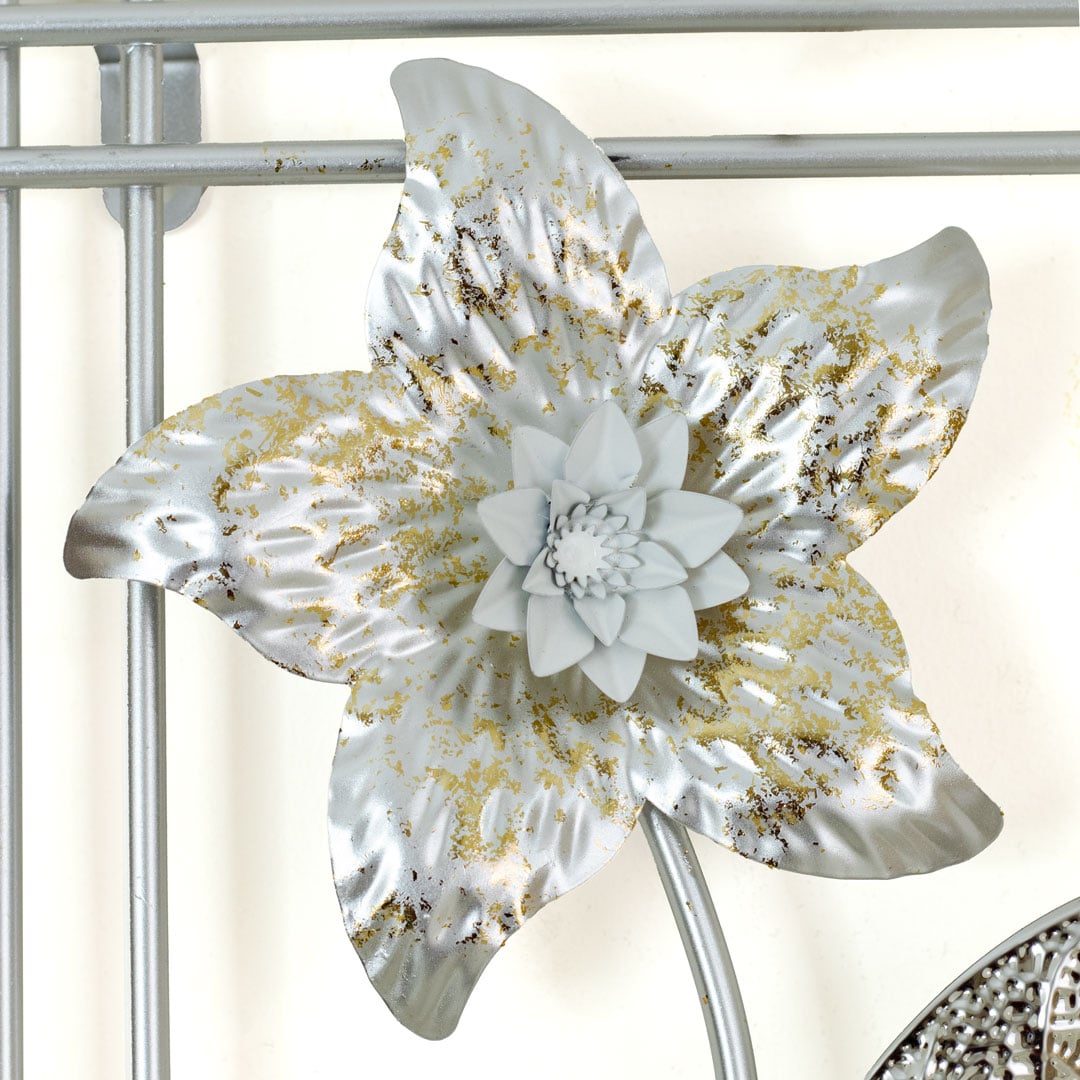 3 Piece Botanical Metal Wall Decor Set White and Silver