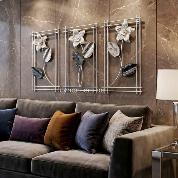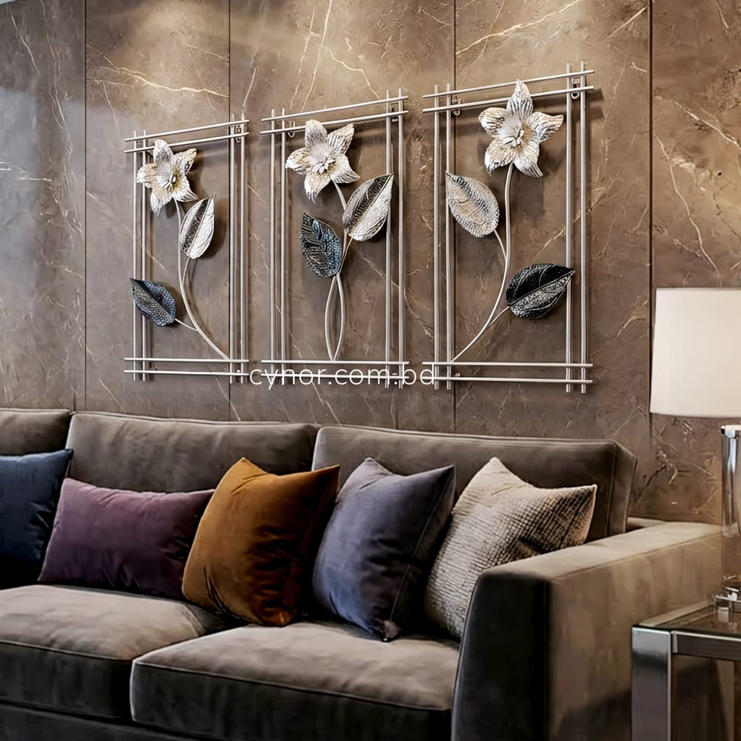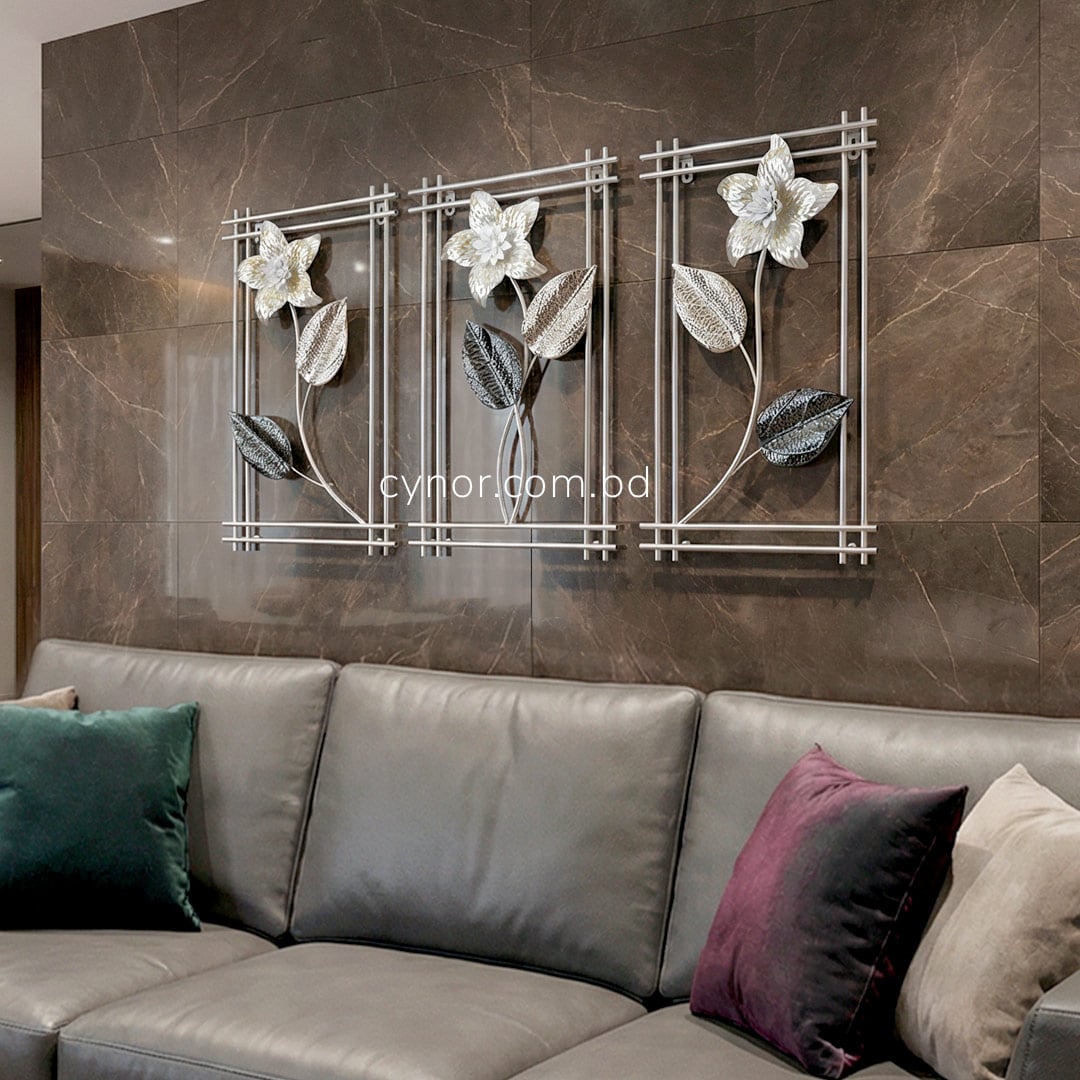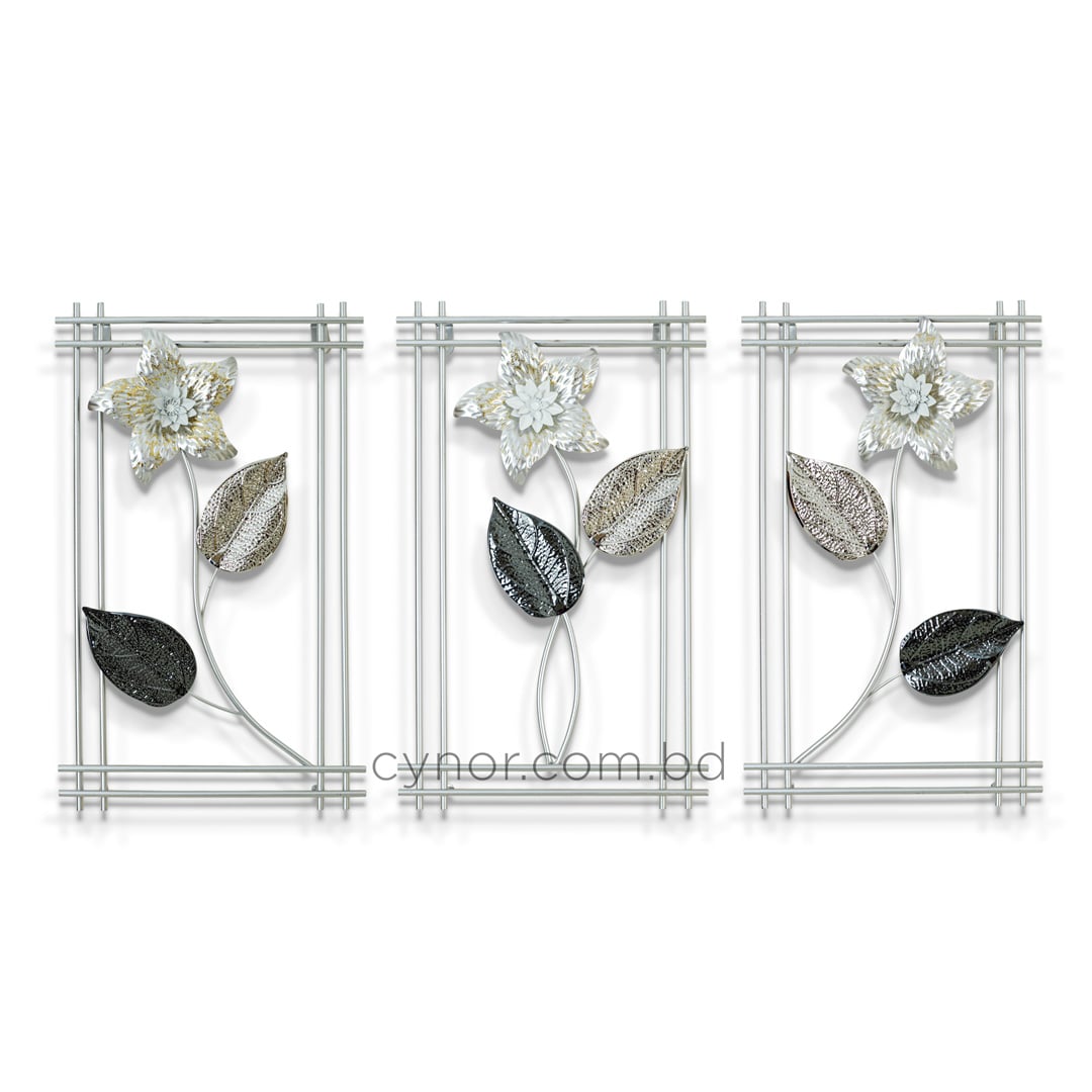 3 Piece Botanical Metal Wall Decor Set White and Silver