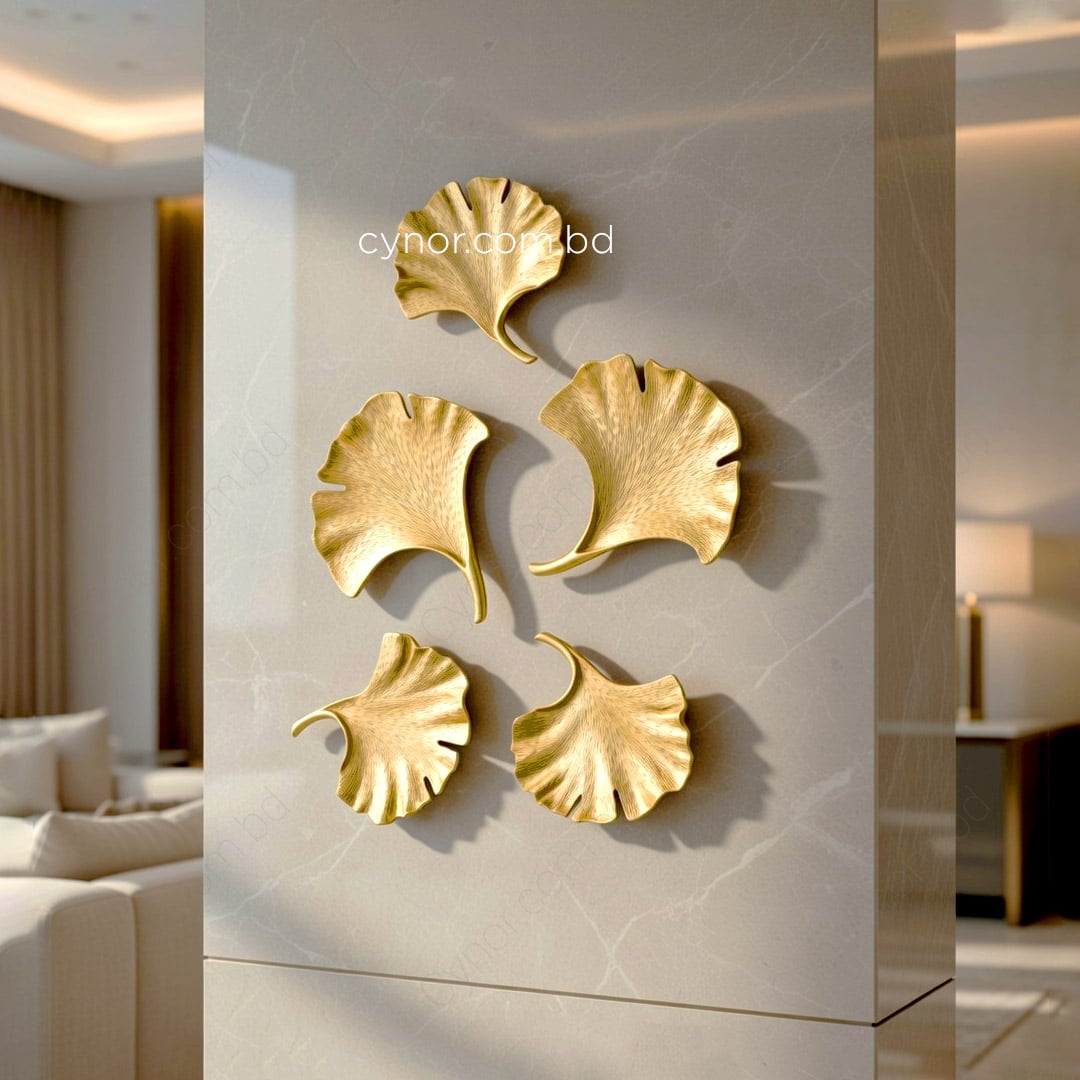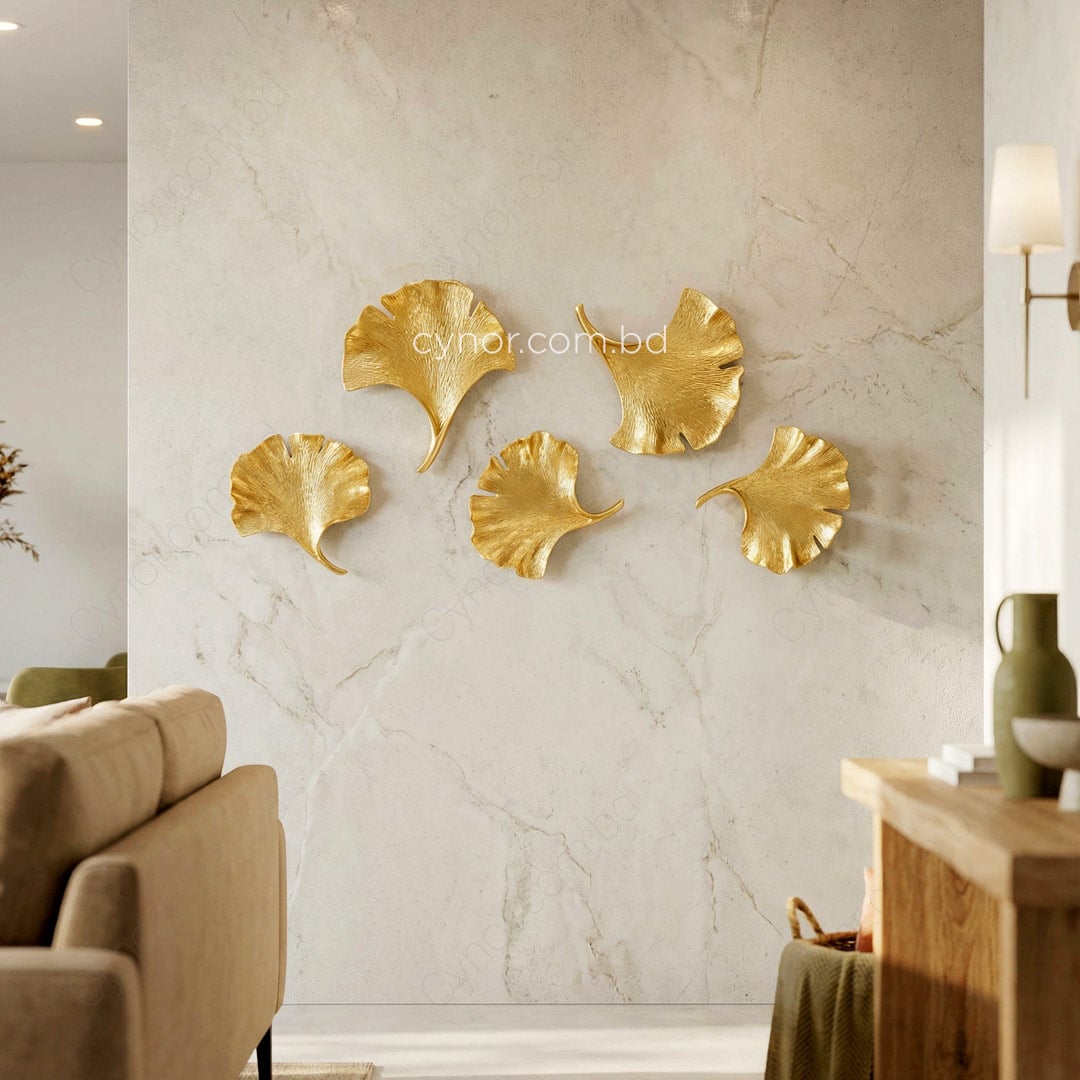 Elevate your interior with this 5-piece gold ginkgo leaf wall decor set, a sophisticated blend of botanical charm and modern luxury. Crafted from lightweight fiber material, these sculptures feature intricate, realistic textures that mimic the natural veins of the ginkgo biloba leaf. The set includes two large and three small leaves, finished in a radiant metallic gold that catches the light and adds depth to any wall;