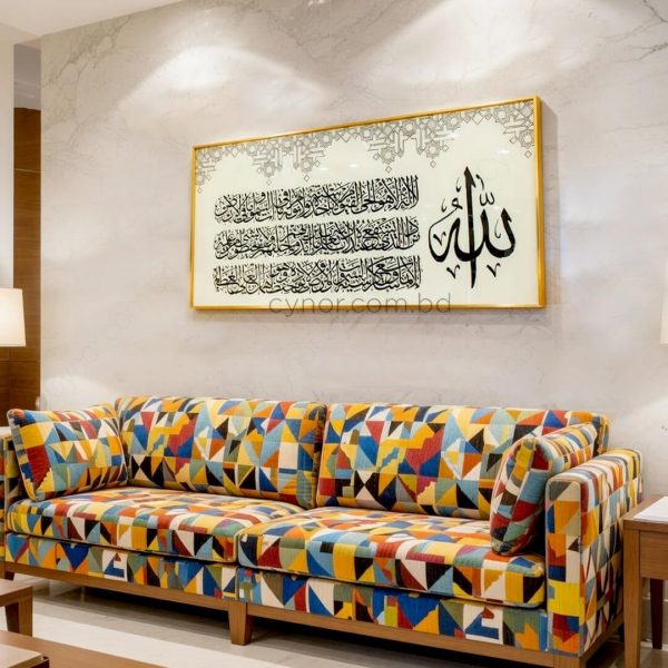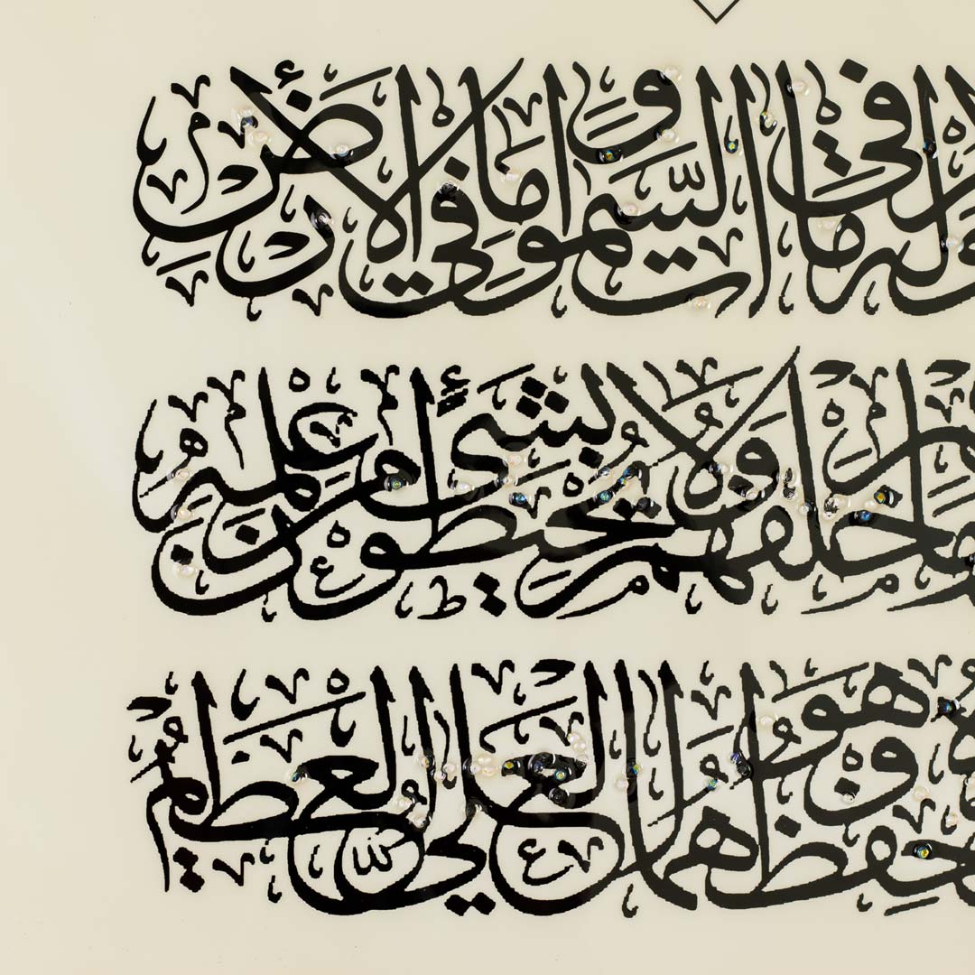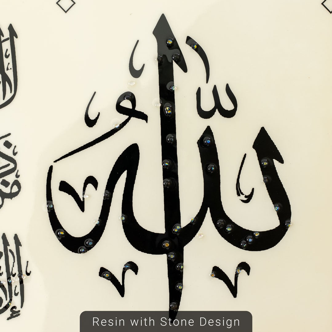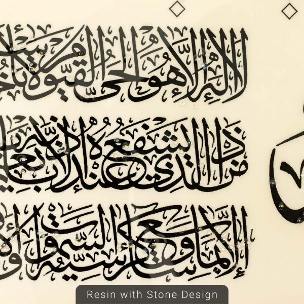 The Ayatul Kursi calligraphy and geometric background are crafted with a premium resin and stone-inlay effect, adding depth, texture, and a luxurious handcrafted appearance;