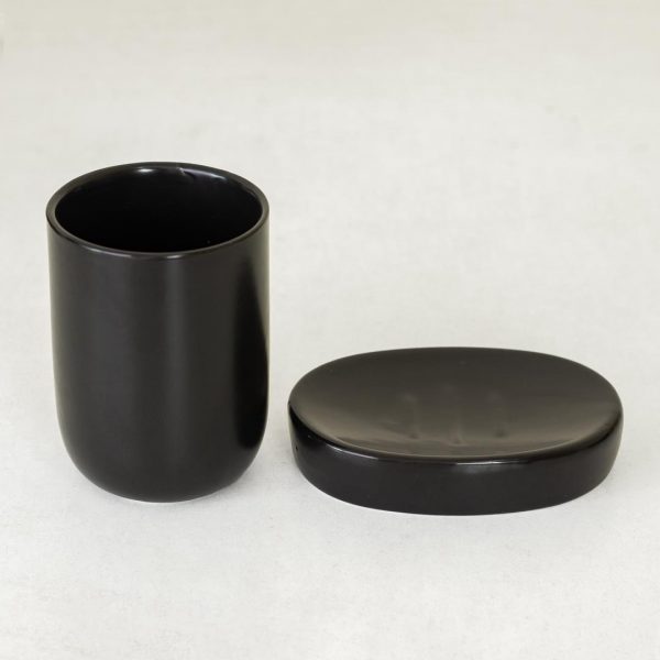 Black Porcelain Ceramic Bathroom Accessory Set 4 PiecesBlack Porcelain Ceramic Bathroom Accessory Set 4 Pieces