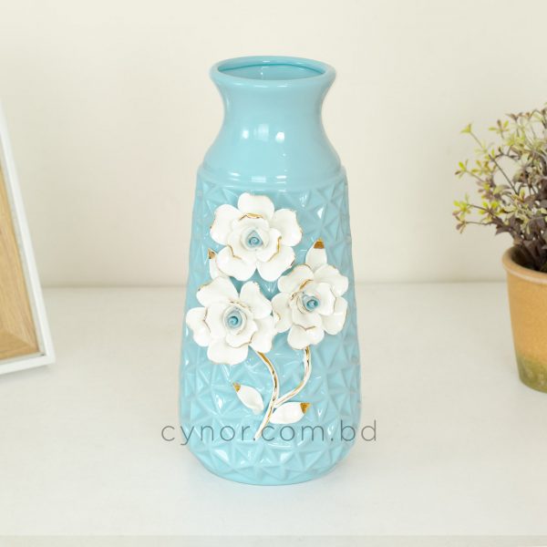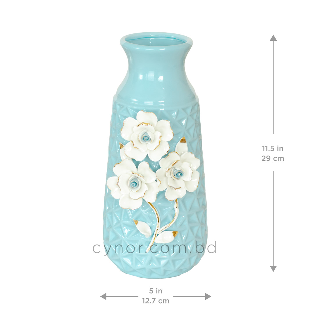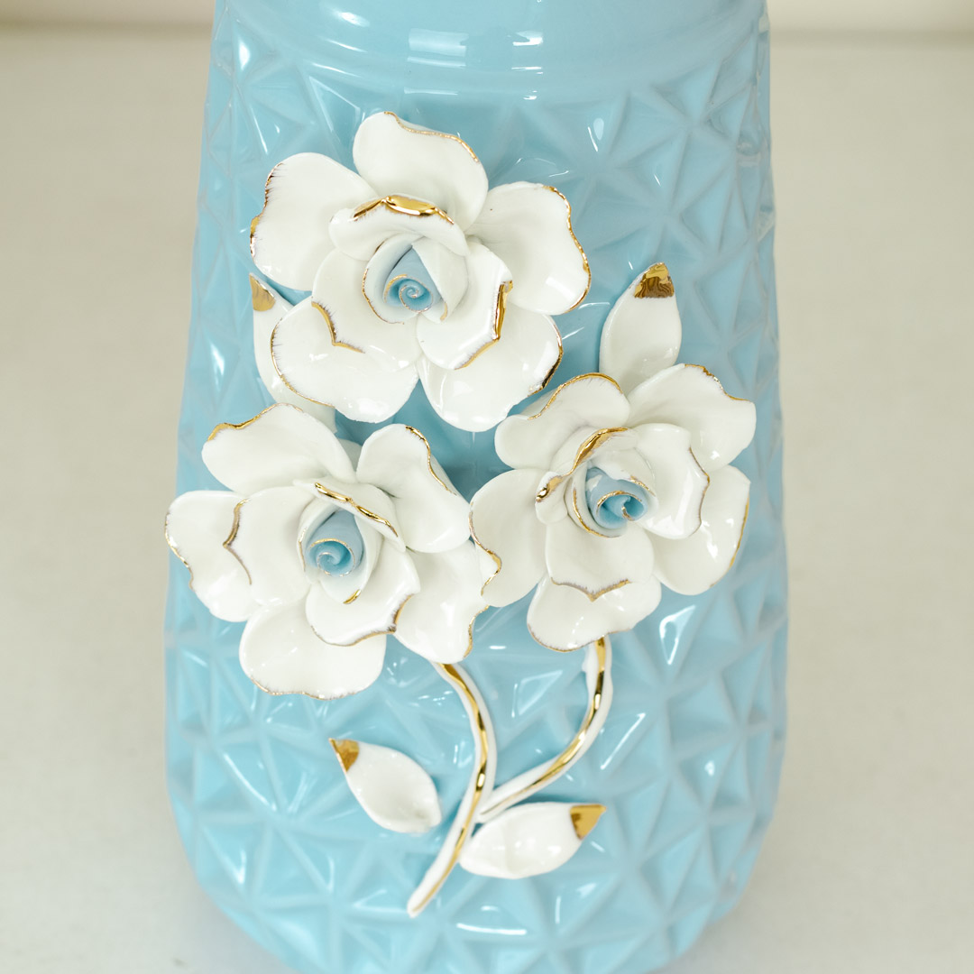 Blue Porcelain Ceramic Flower Vase Decorative Floral Design