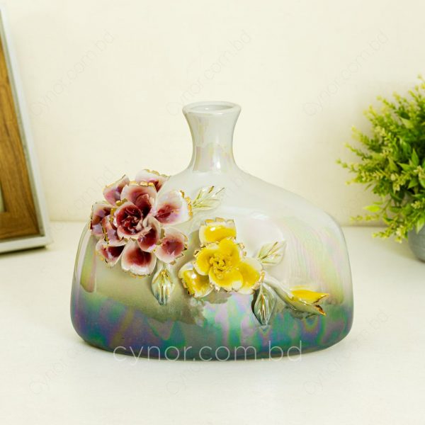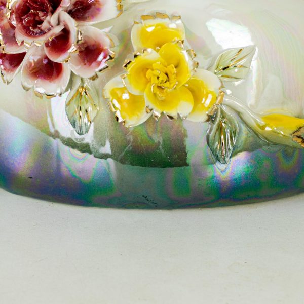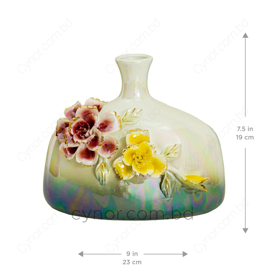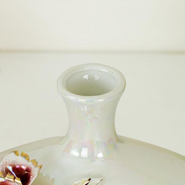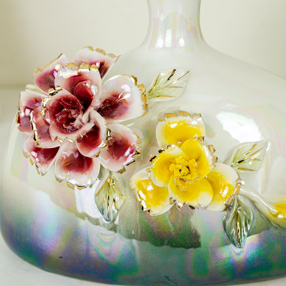 Ceramic Porcelain Flower Vase Floral Design Iridescent Glaze