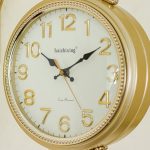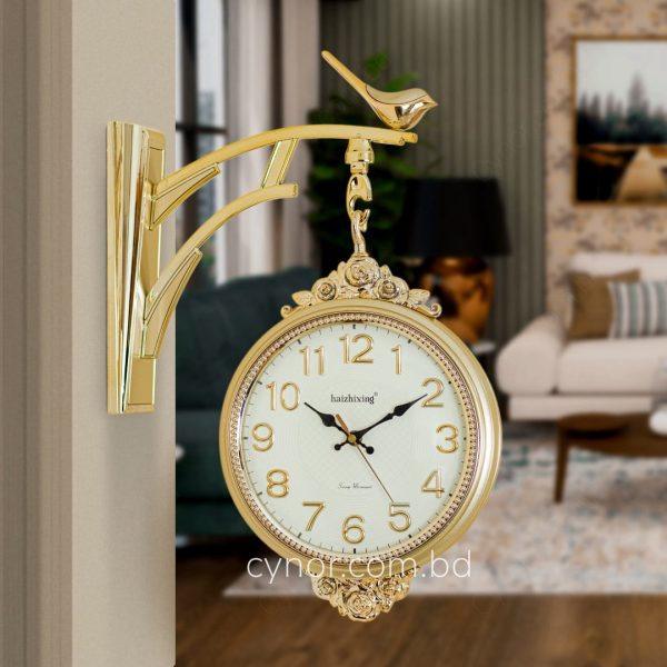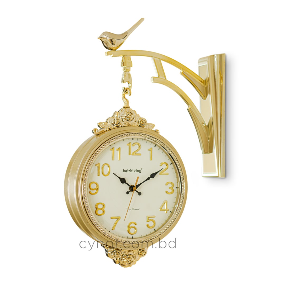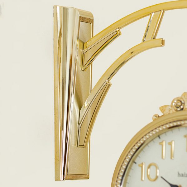 Double Sided Station Wall Clock Fiber Body Golden Color Floral Design