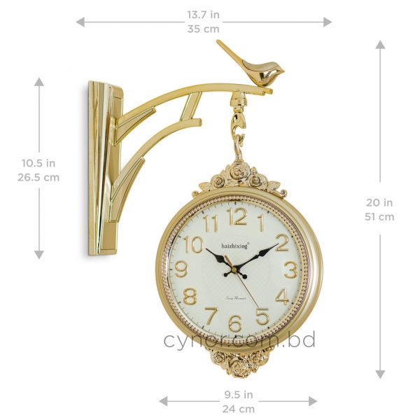 Bring a touch of timeless elegance to your home with this double-sided station wall clock. Designed to be viewed from both sides, this hanging clock is as functional as it is beautiful, making it the perfect centerpiece for hallways, large living rooms, or open-plan spaces.