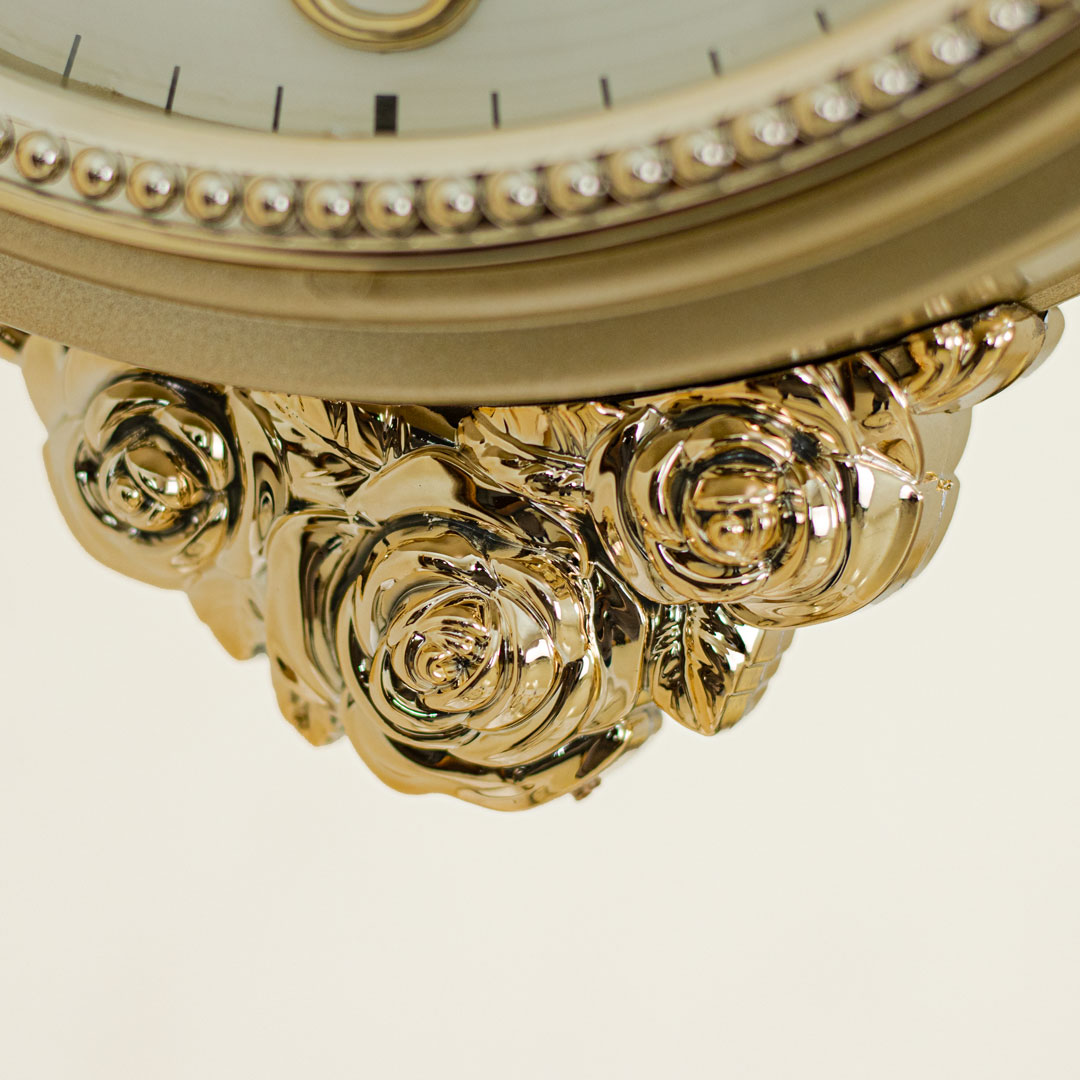 Floral Accents: Elegant rose-pattern carvings adorn the top and bottom of the clock frame, adding a romantic, traditional feel;