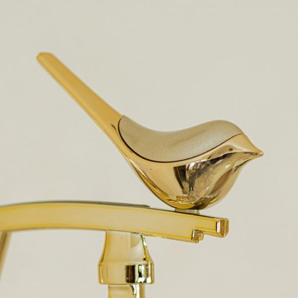 Ornate Detailing: The clock features a charming golden bird ornament perched atop a sleek, curved mounting bracket;