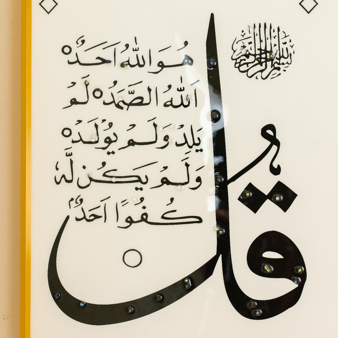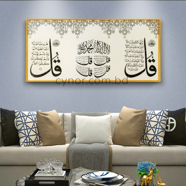 Four Quls Islamic Wall Frame Golden Aluminum Frame Resin Stone Wall Art