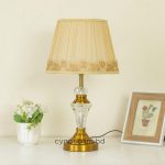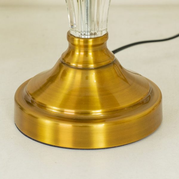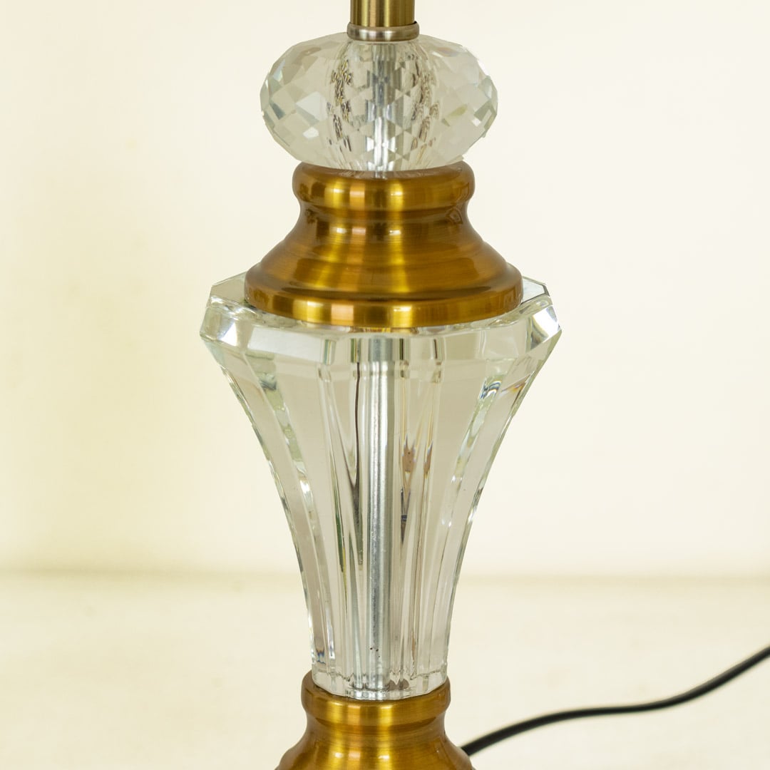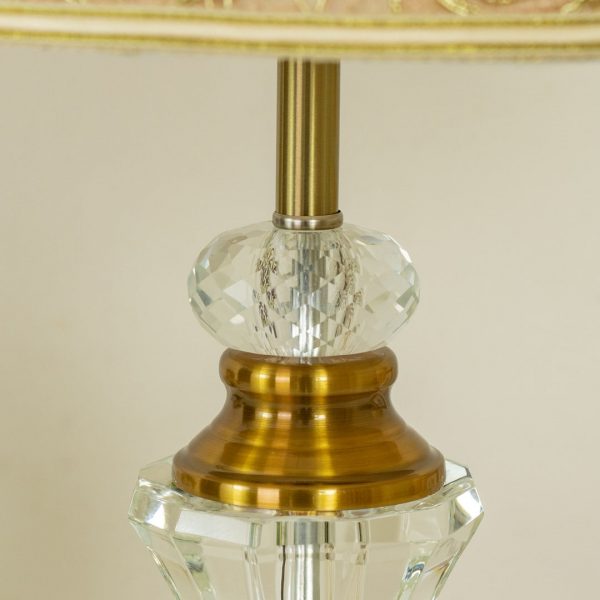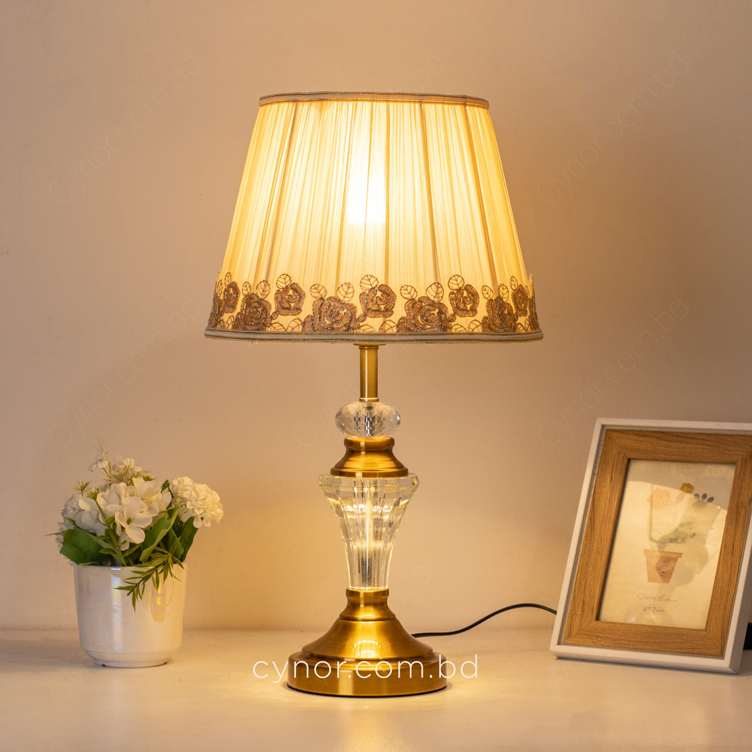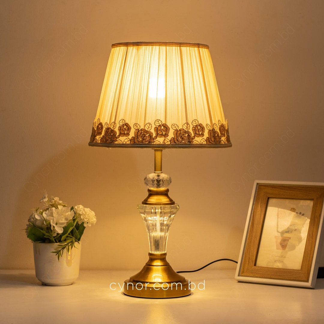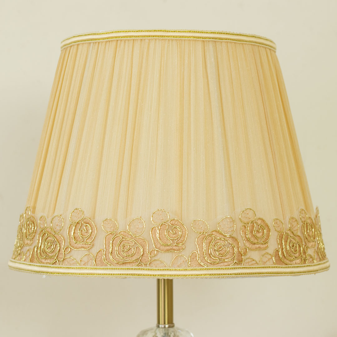 Golden Metal Crystal Table Lamp with Floral Cream Fabric Shade