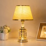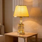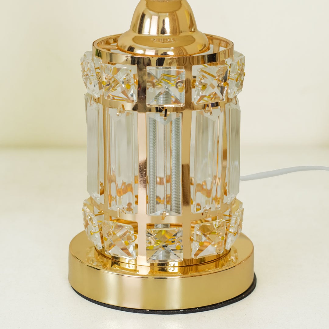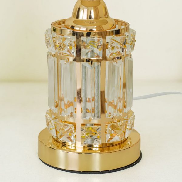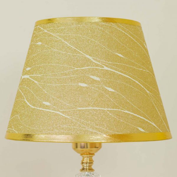 Golden Metal Table Lamp with Crystal Design and Brown Plastic Shade