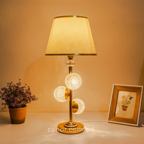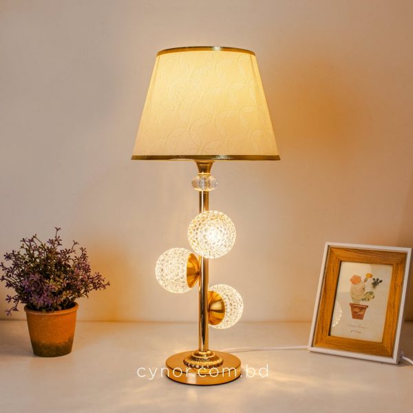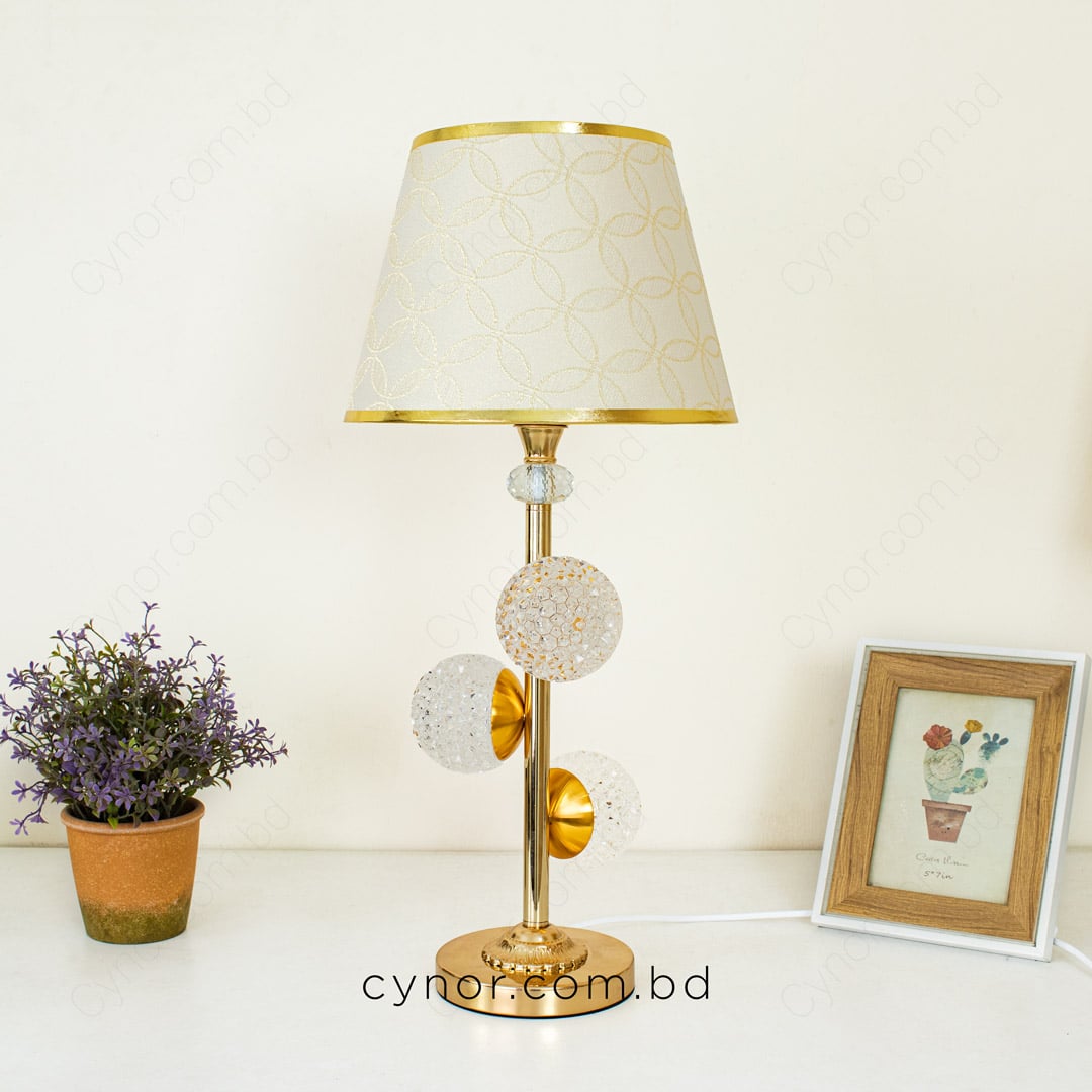 Golden Metal Table Lamp with Crystal Design and Decorated Cream Plastic Shade