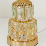 Golden Metal Table Lamp with Crystal Design and Floral Fabric Shade