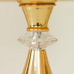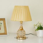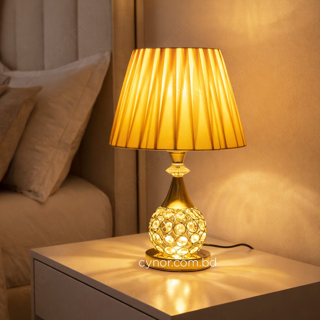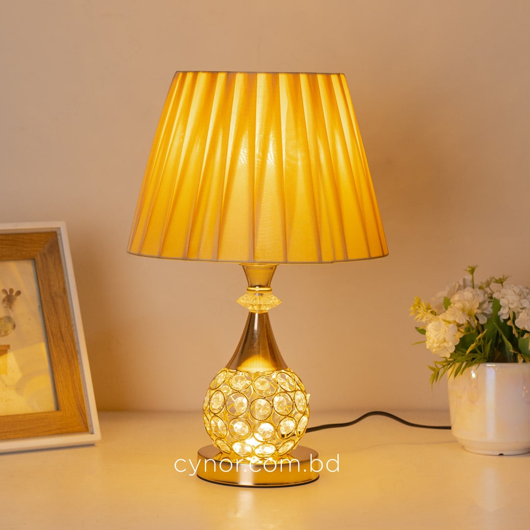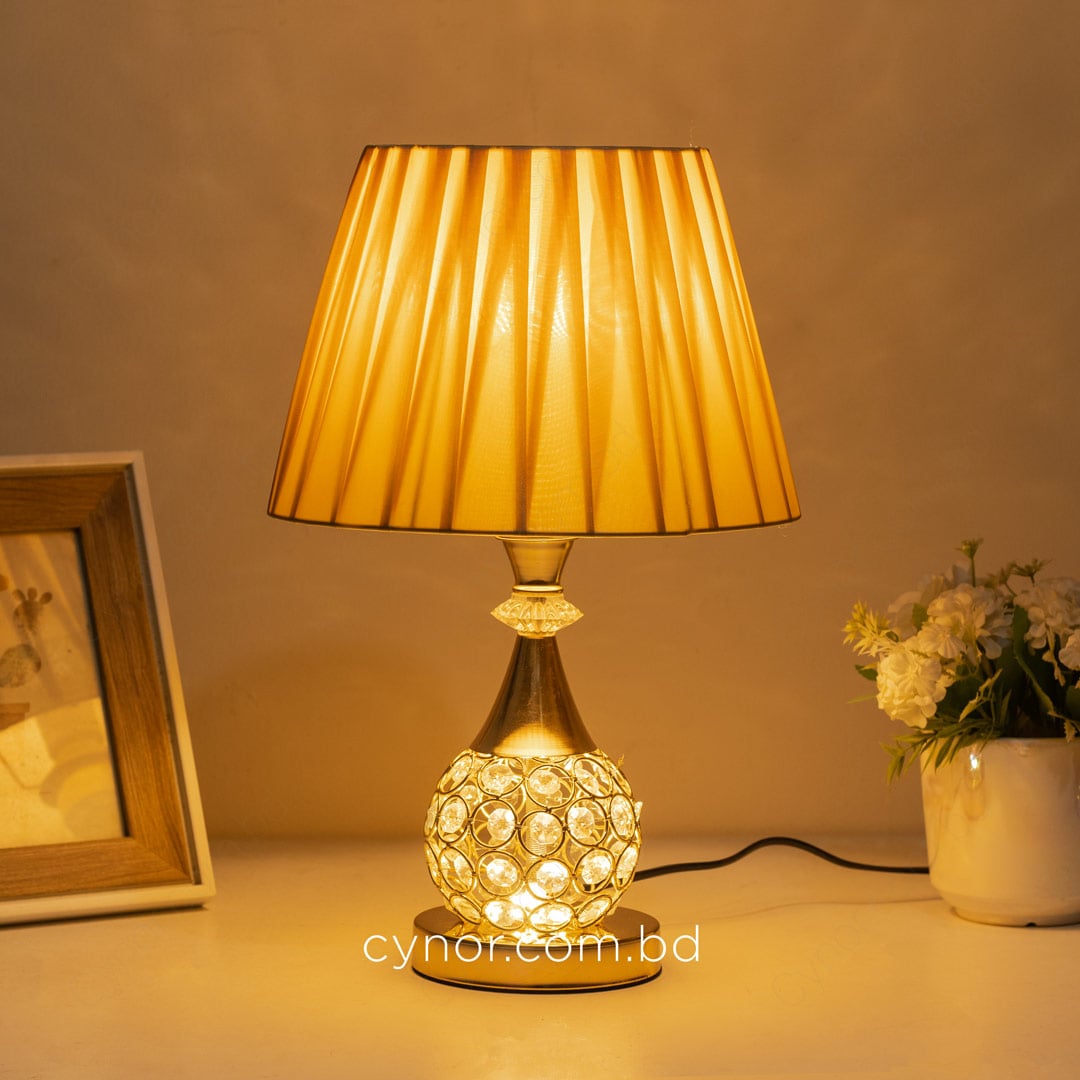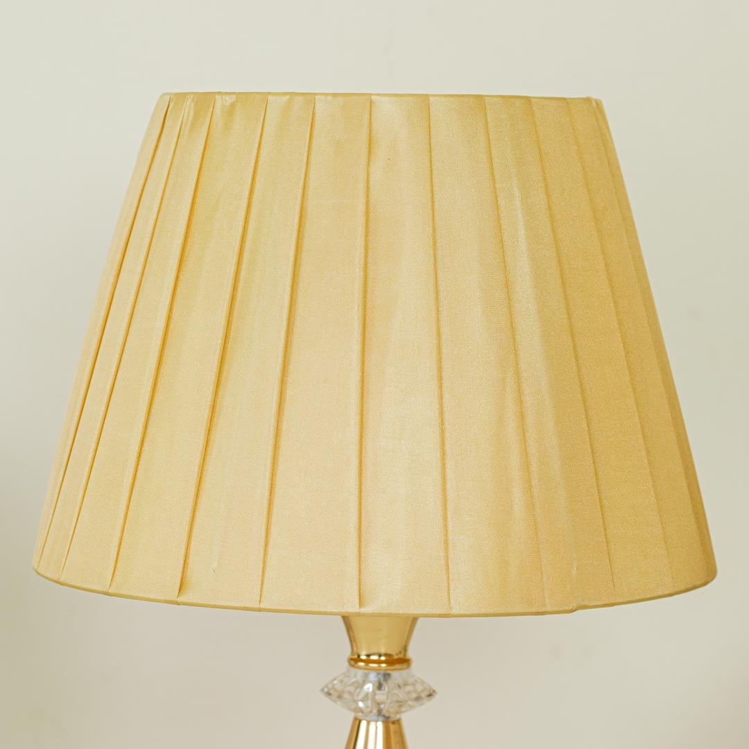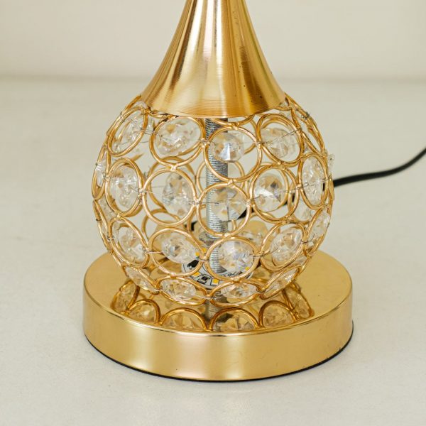 Golden Metal Table Lamp with Crystal Stone Design and Soft Gold Shade