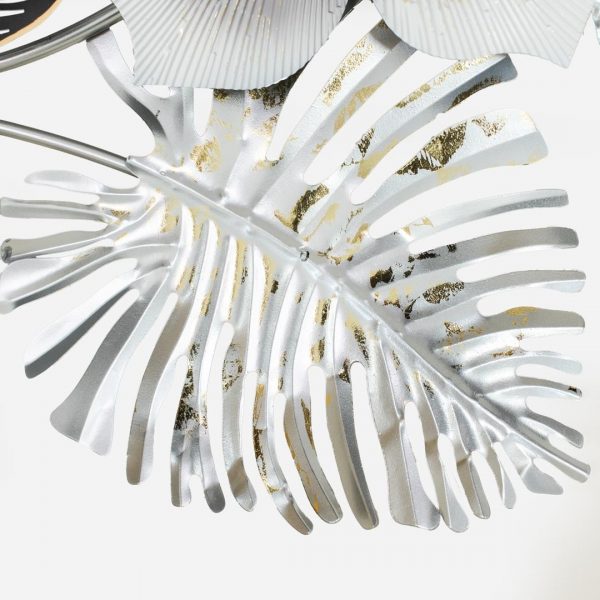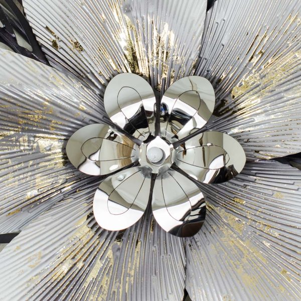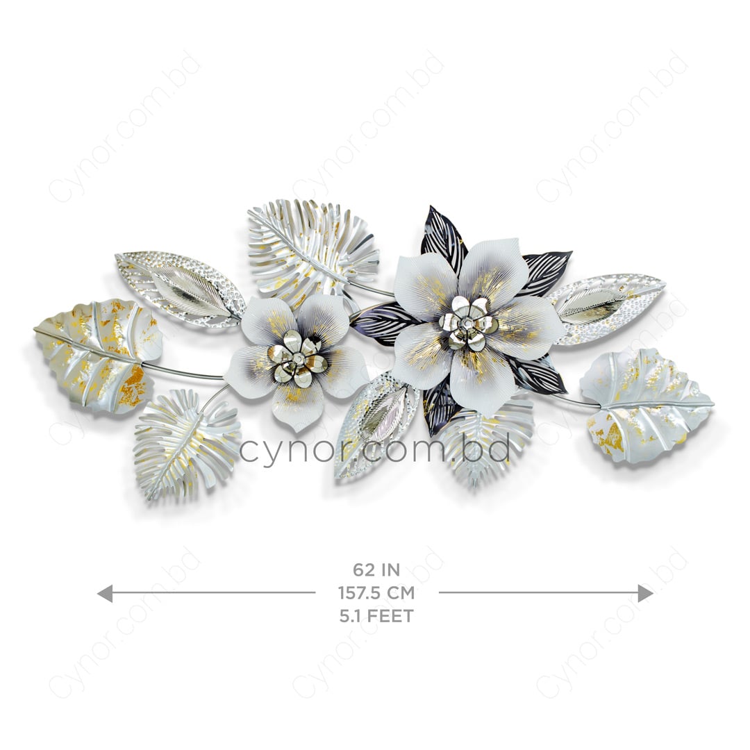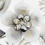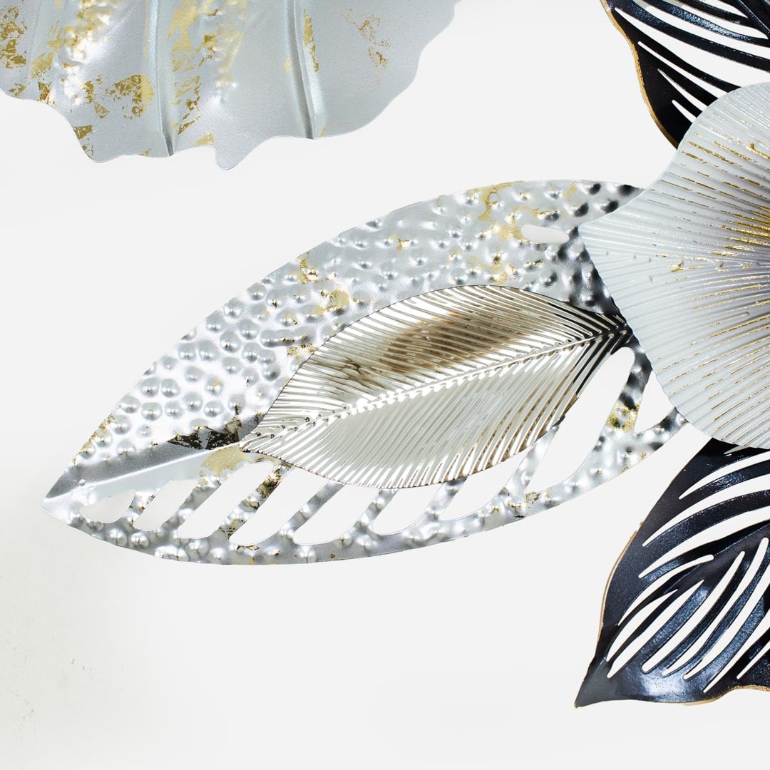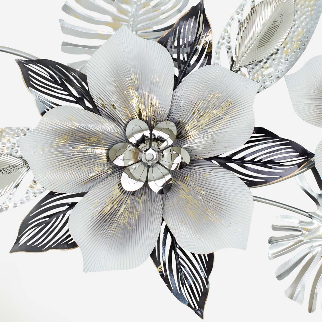 Luxury Botanical Floral Composition SS Metal Wall Decor Silver Black Soft Ivory Finish