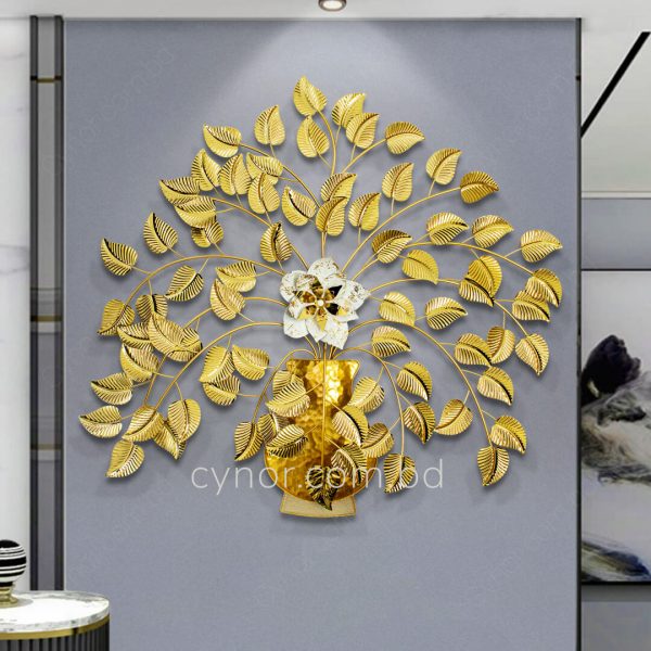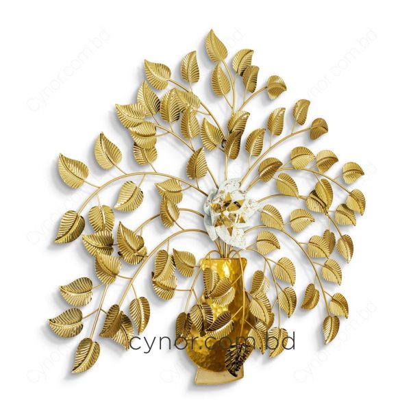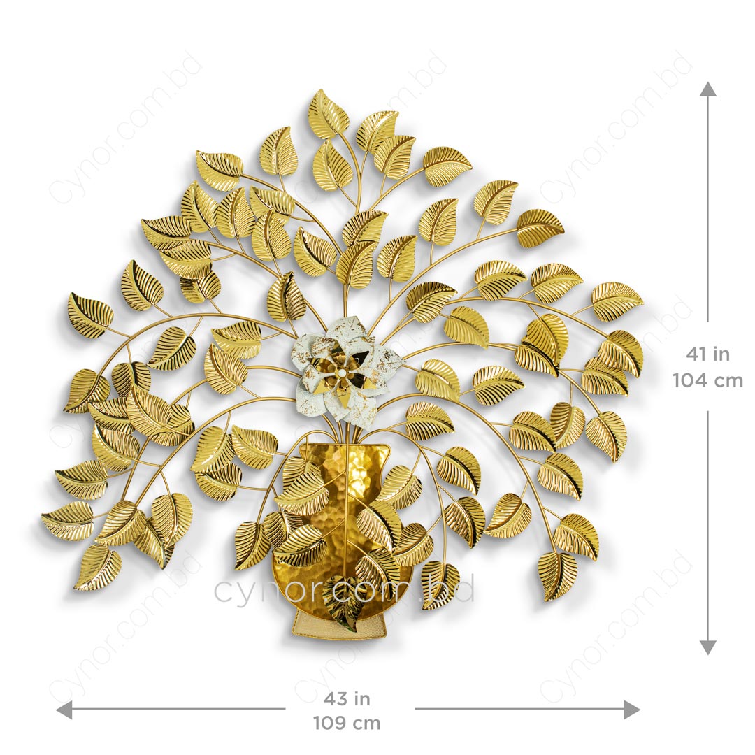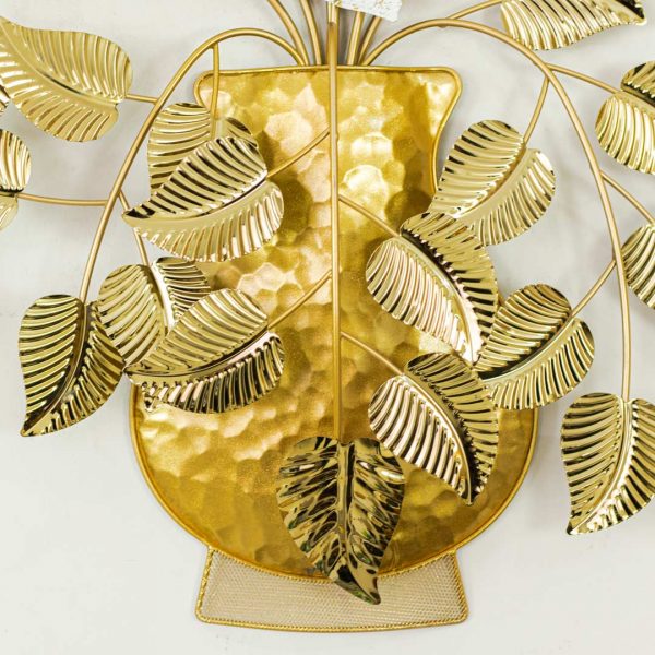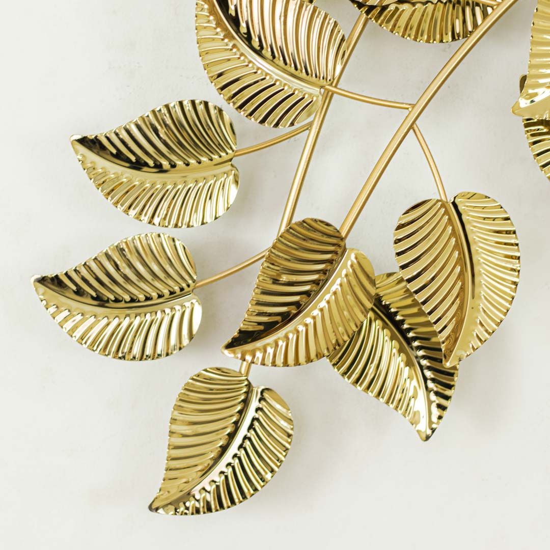 Luxury Botanical SS Metal Wall Decor Glossy Golden Finish