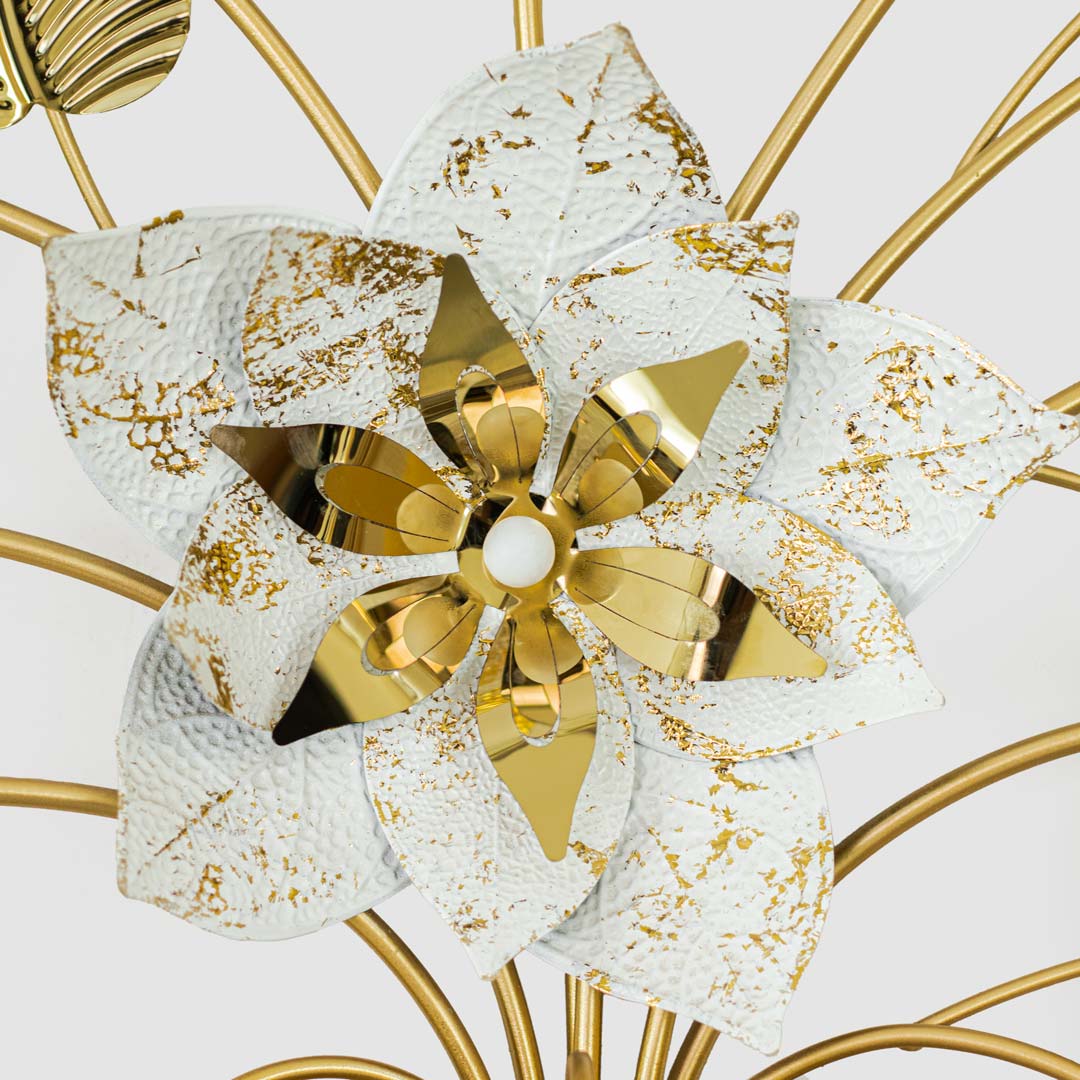 Features an elegant arrangement of layered metal flowers and leaves, creating a rich botanical statement for feature walls;