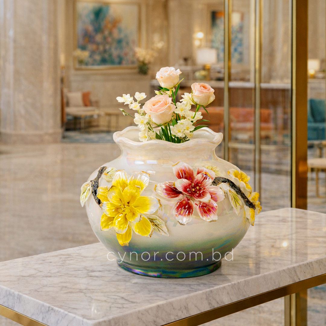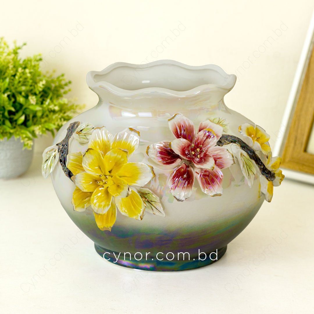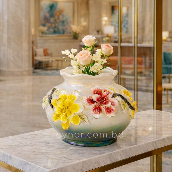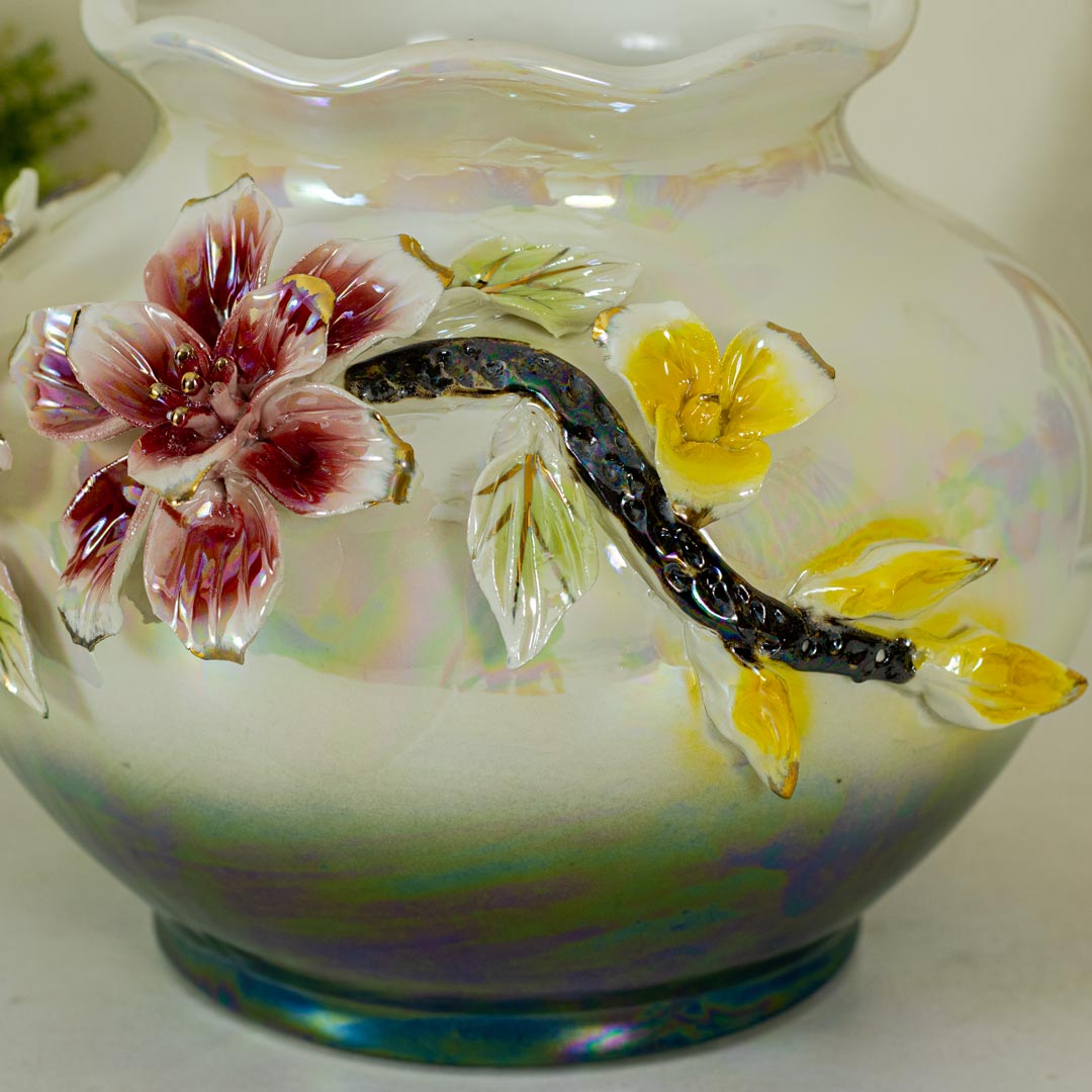 Luxury Iridescent Porcelain Flower Vase with Elegant Floral Design
