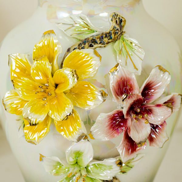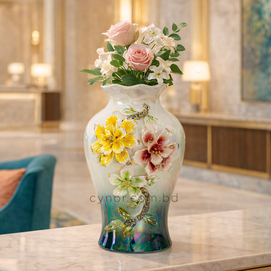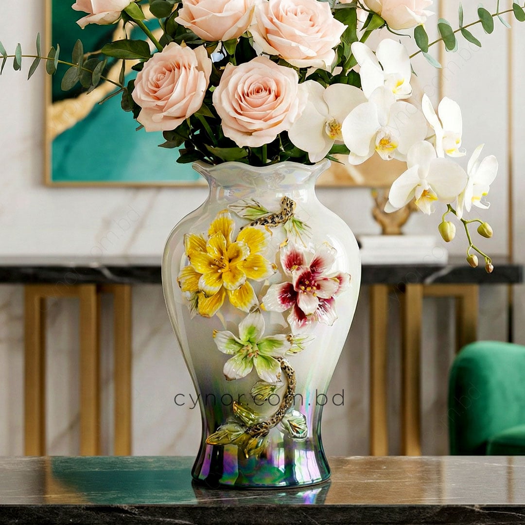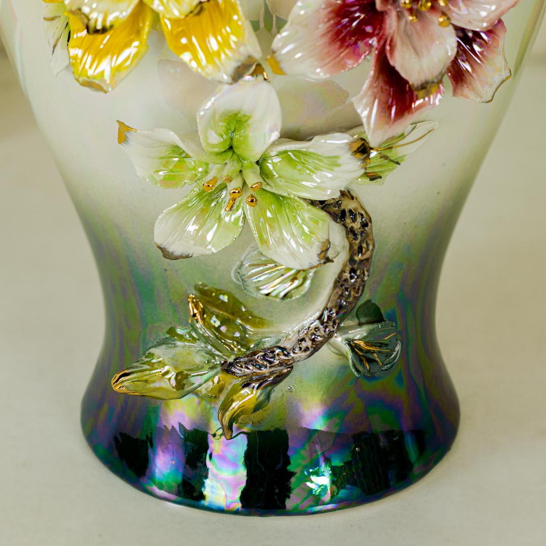 Luxury Iridescent Porcelain Flower Vase with Elegant Floral Design