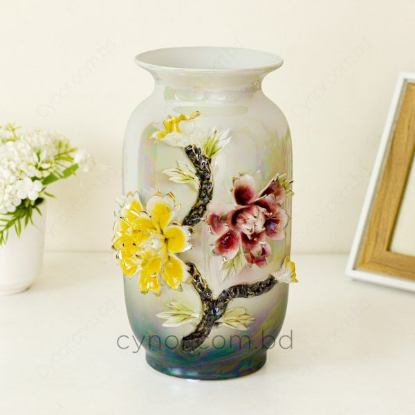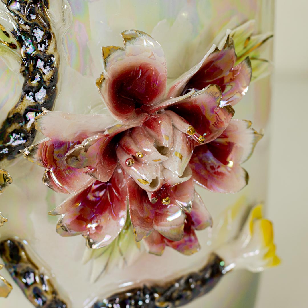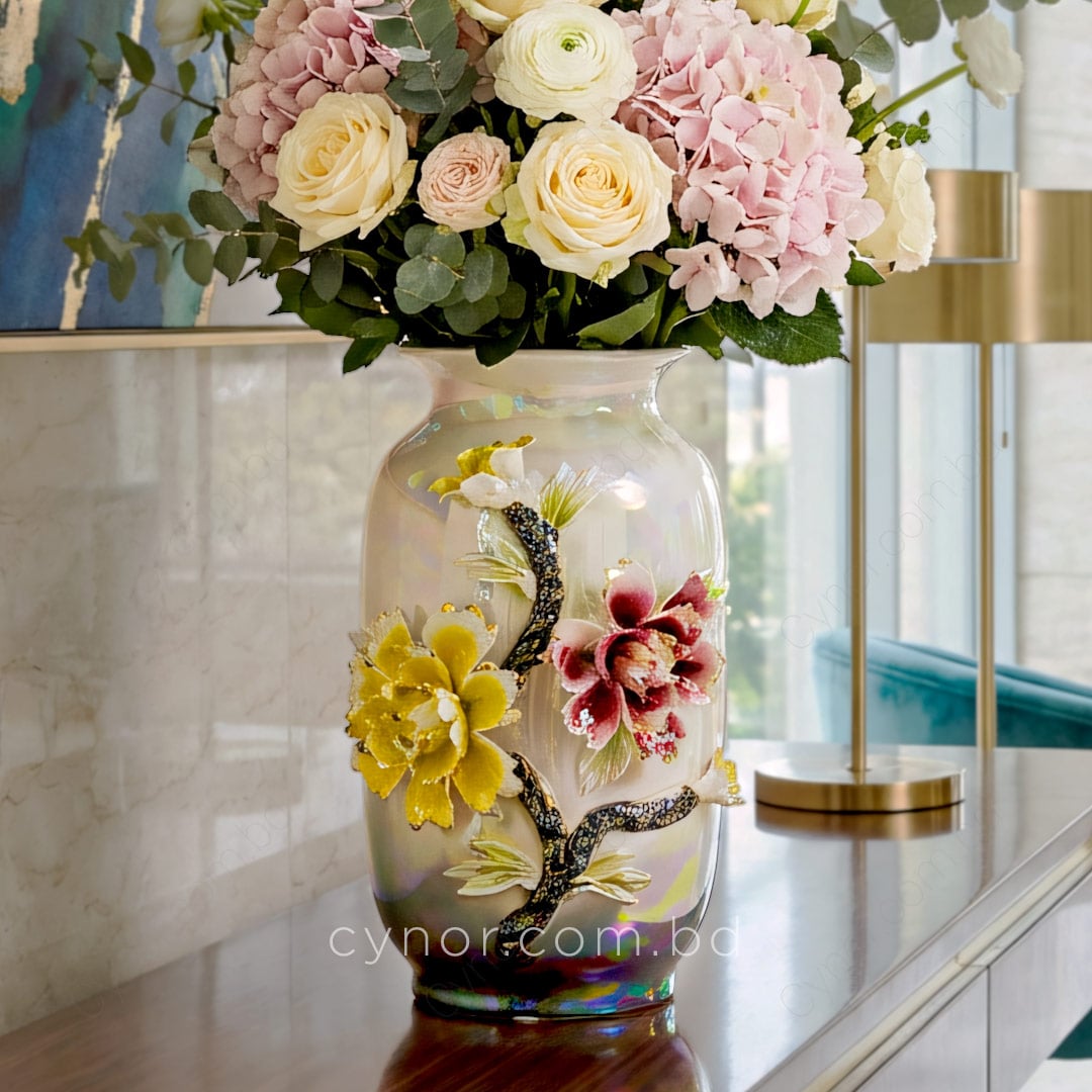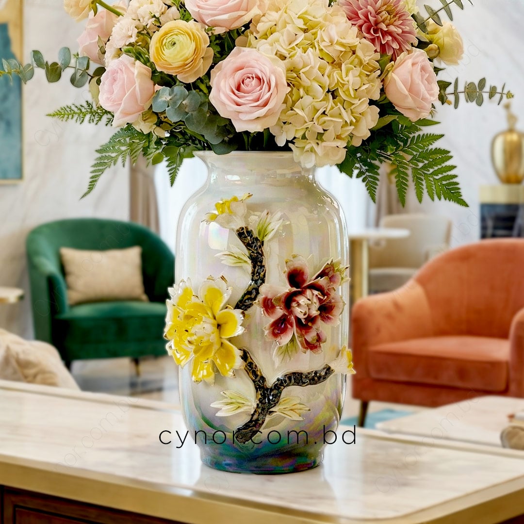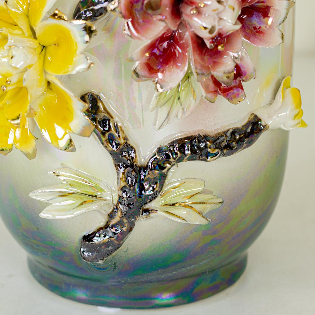 Luxury Porcelain Flower Vase with Elegant Iridescent Floral Design