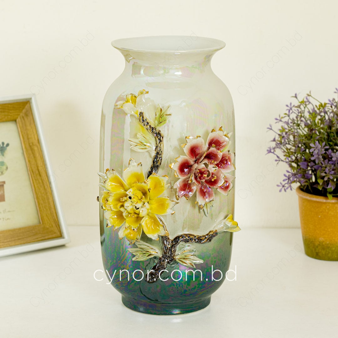 Luxury Porcelain Flower Vase with Elegant Iridescent Floral Design