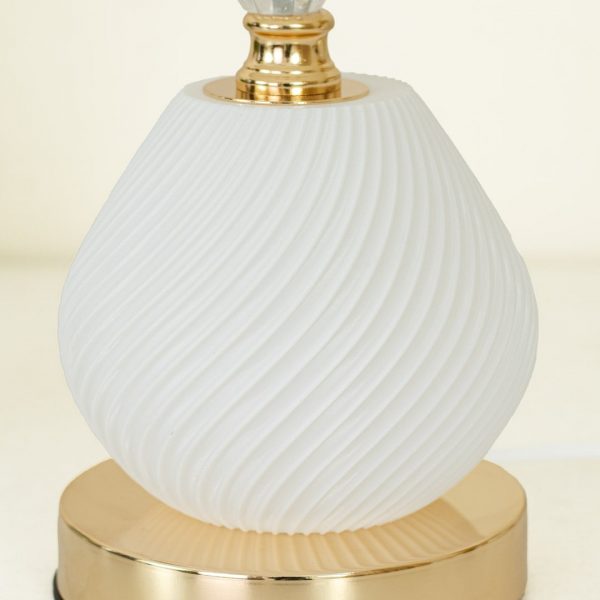 Metal Body Acrylic and Crystal Design Golden Table Lamp White Texture Plastic Shade