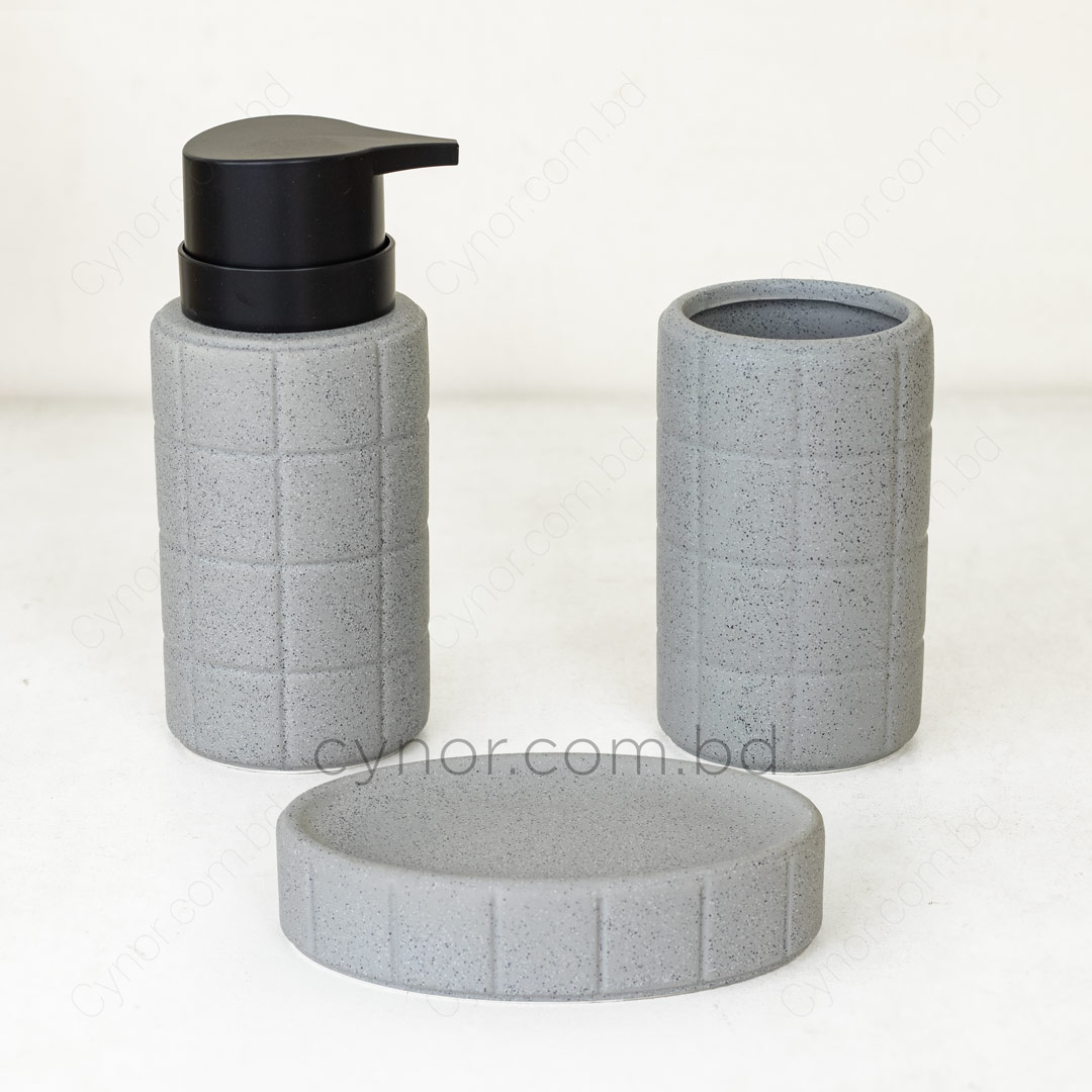 Porcelain Ceramic 3 Piece Bathroom Accessory Set Ash