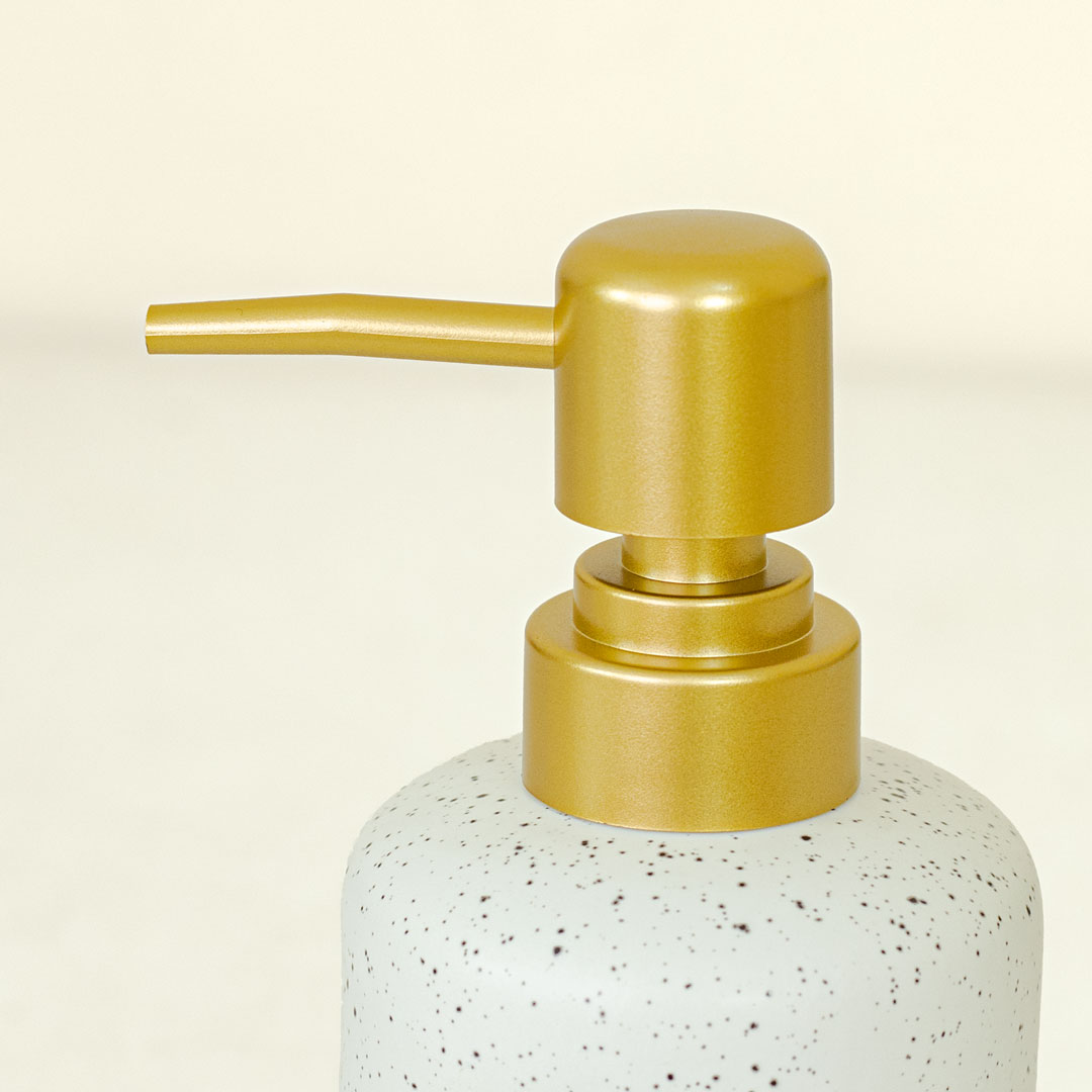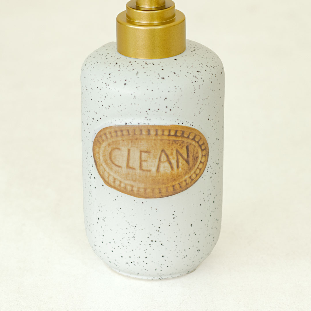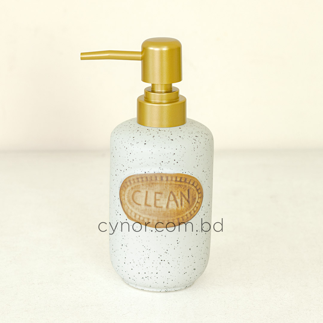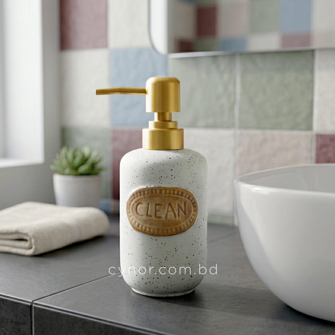 This elegant dispenser is designed for everyday convenience with a modern, minimal look. The body is made from durable ceramic with a smooth textured finish, while the pump head is crafted from sturdy plastic for easy and reliable dispensing;