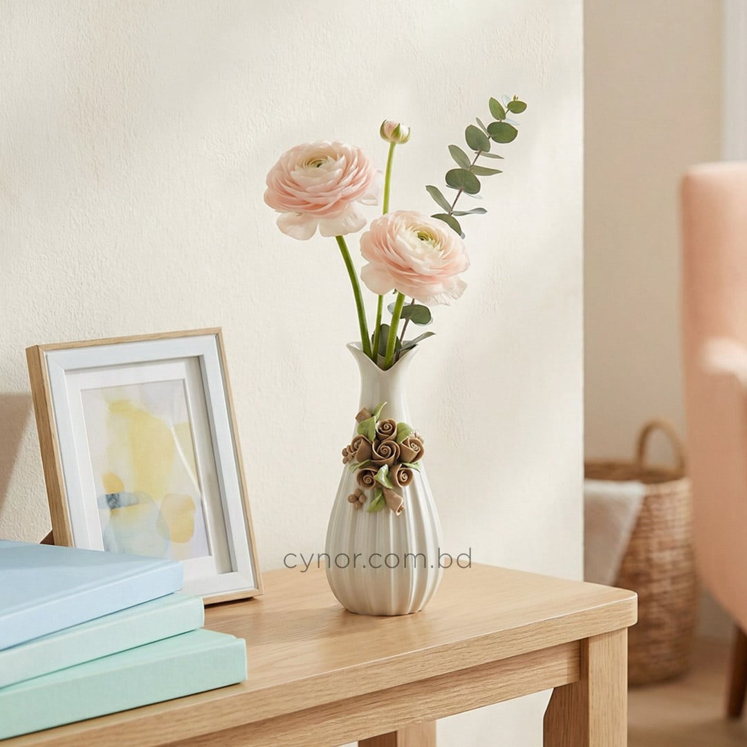 Porcelain Vase with Floral Ceramic Design