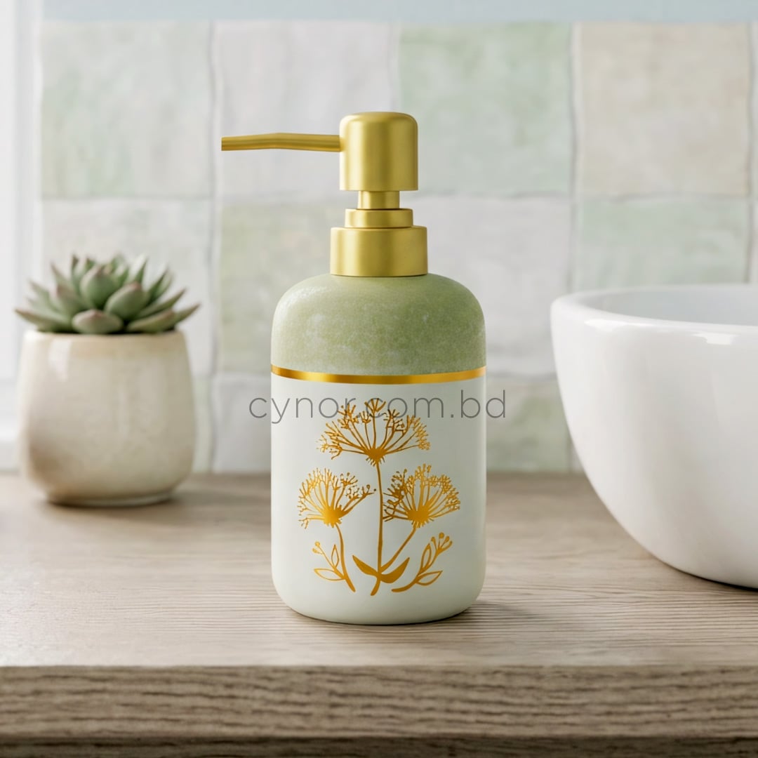 Sage Green White Golden Porcelain Ceramic Soap Shampoo DispenserSage Green White Golden Porcelain Ceramic Soap Shampoo Dispenser