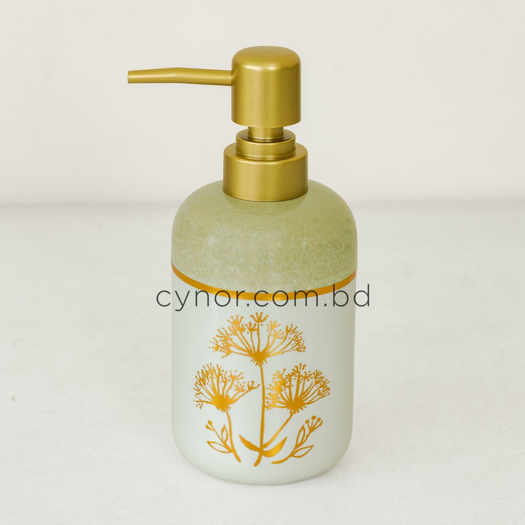 Sage Green White Golden Porcelain Ceramic Soap Shampoo Dispenser