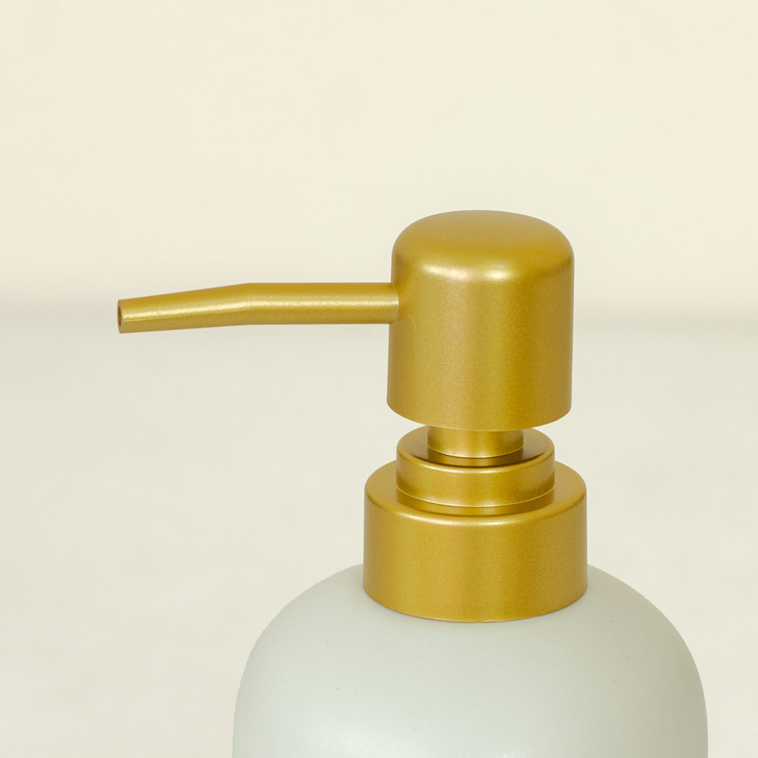 This elegant dispenser is designed for everyday convenience with a modern, minimal look. The body is made from durable ceramic with a smooth textured finish, while the pump head is crafted from sturdy plastic for easy and reliable dispensing;